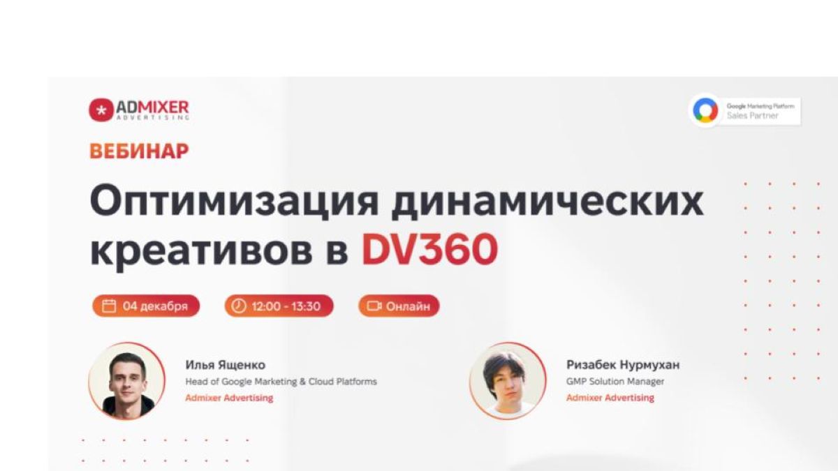 Бесплатный вебинар по оптимизации динамических креативов (DCO) в DV360 от Admixer Advertising