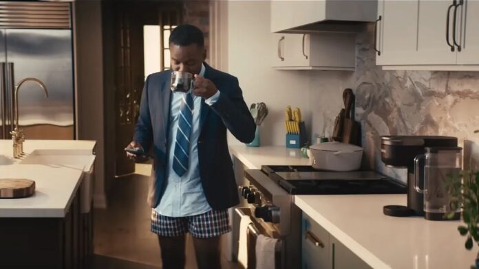 Креатив построен на постпандемических повседневных сценариях. Люди, то работают из дома, сидя на видеозвонках в рубашке и пижамных штанах, то возвращаются в офис в «пиковые» дни недели, сталкиваясь с длинными очередями за кофе по пути.
