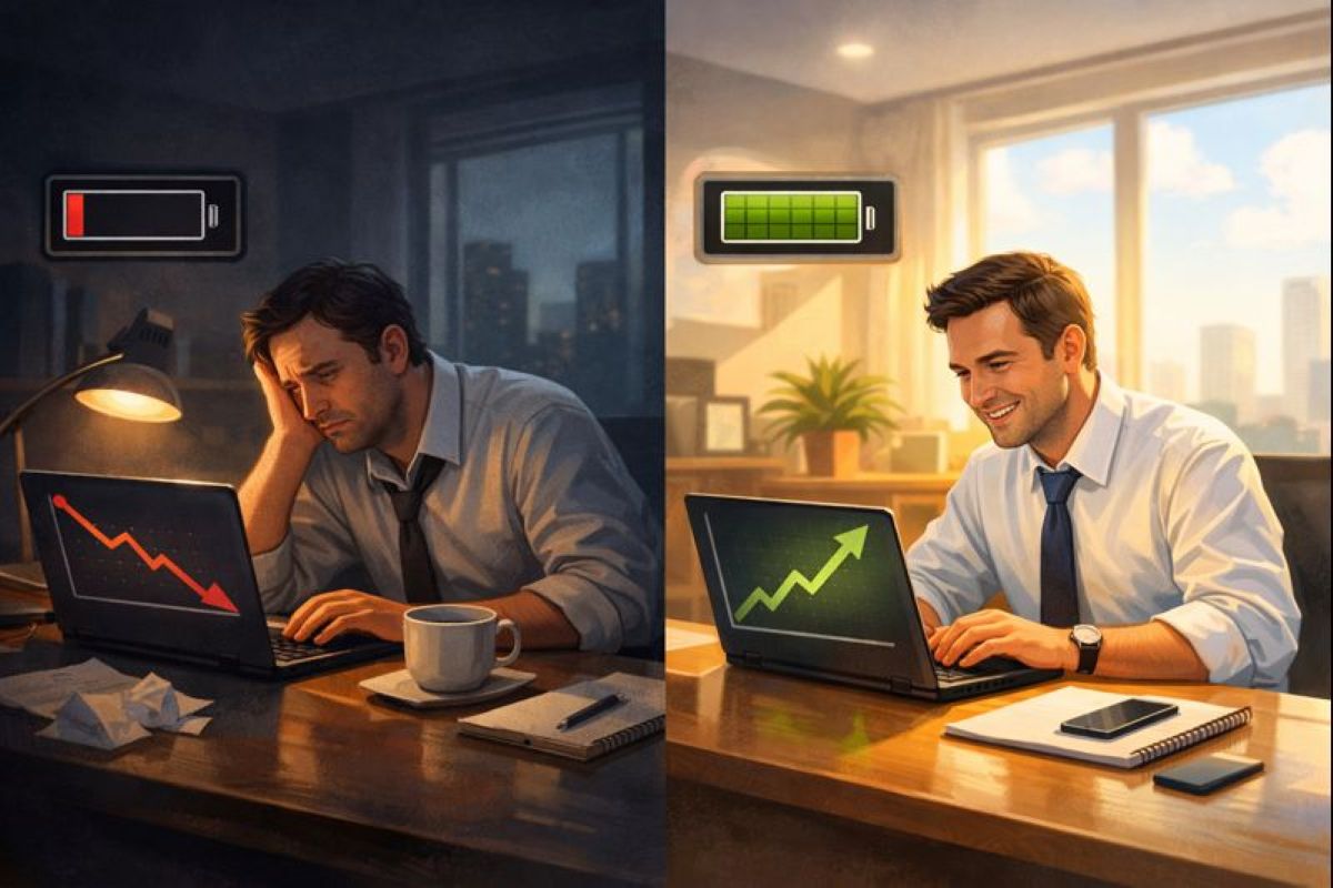 Около 45% опрошенных заявили, что чувствуют себя слишком уставшими, чтобы делать то, что им действительно нравится, даже в свободное время. Более того, 56% уверены, что отсутствие энергии снижает их продуктивность в целом. Это может отражаться не только на ощущении собственной эффективности, но и на реальных карьерных результатах.