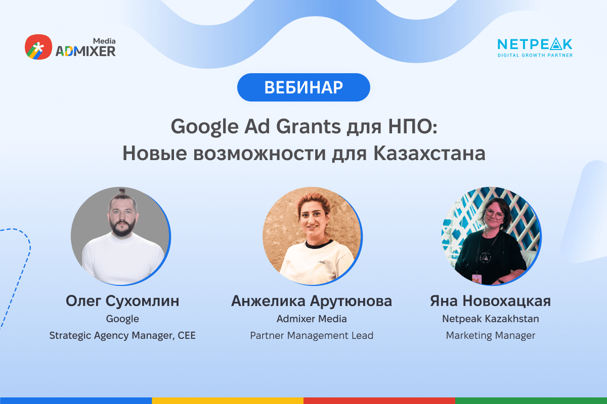 Netpeak Kazakhstan и Admixer Media запускают серию обучающих вебинаров и встреч, чтобы помочь НПО пройти регистрацию, правильно настроить инструменты и максимально использовать гранты.