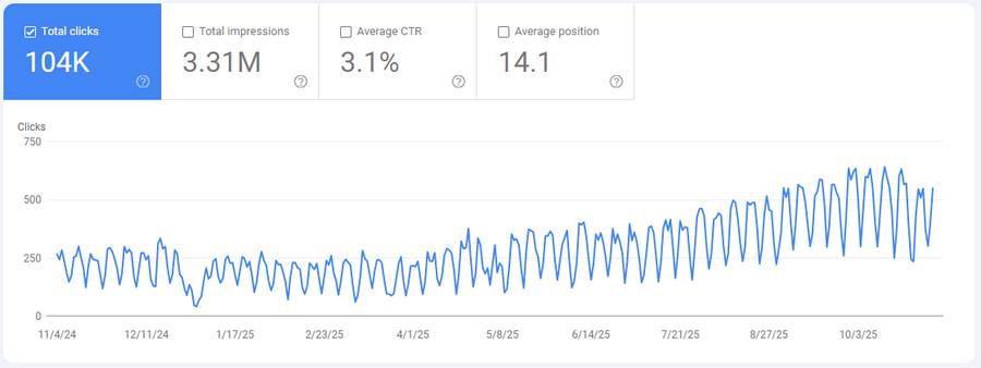 5. Общая динамика переходов из Google за последний год (ноябрь 2024 — октябрь 2025) показывает стабильный рост.