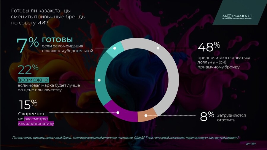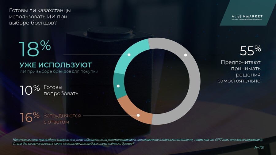Уже 18% казахстанцев доверяют искусственному интеллекту выбор бренда и ещё 10% готовы сделать это в ближайшее время.