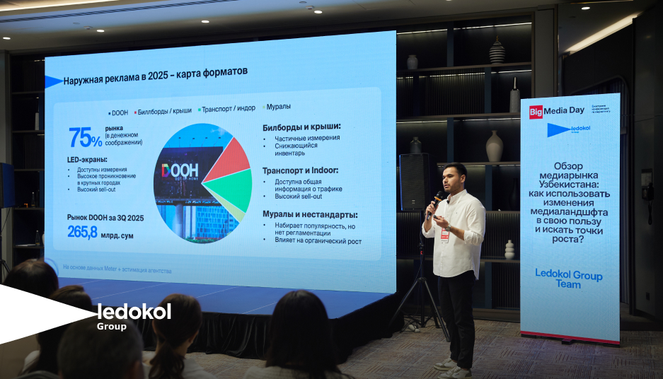24 октября 2025 года в отеле InterContinental Tashkent прошла конференция Big Media Day 2025, организованная рекламным холдингом Ledokol Group. Это событие стало одной из главных профессиональных площадок года для специалистов в сфере маркетинга, digital, рекламы и PR, собрав более 250 гостей из Узбекистана и соседних стран.