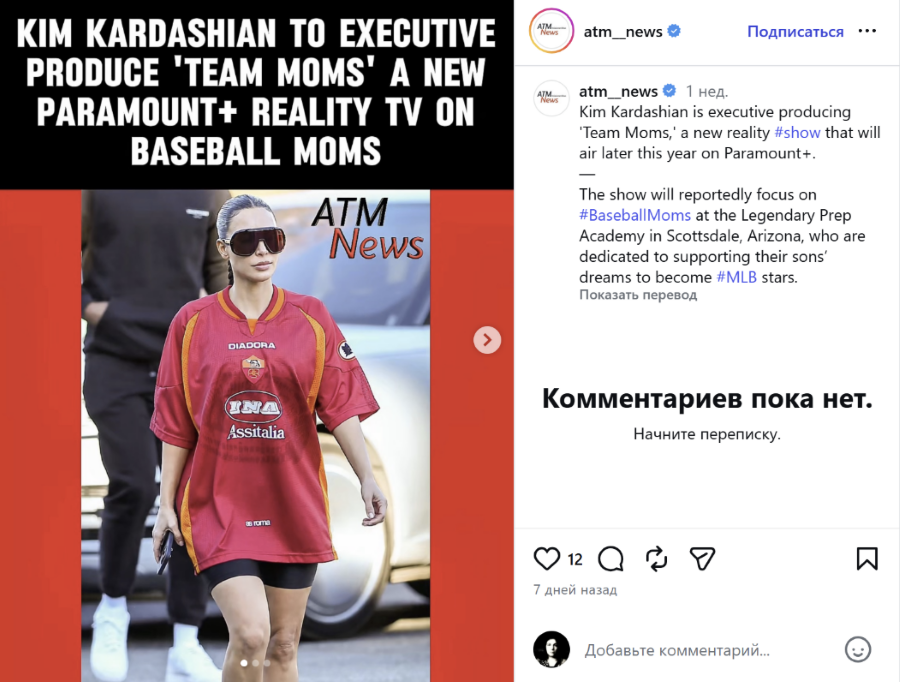 Ким Кардашьян выступит продюсером реалити-шоу Team Moms на Paramount+. Проект посвящен подросткам, обучающимся в бейсбольной академии (с 6-го по 12-й классы), где игроков готовят к первым контрактам с командами и дальнейшей карьере в Major League Baseball.