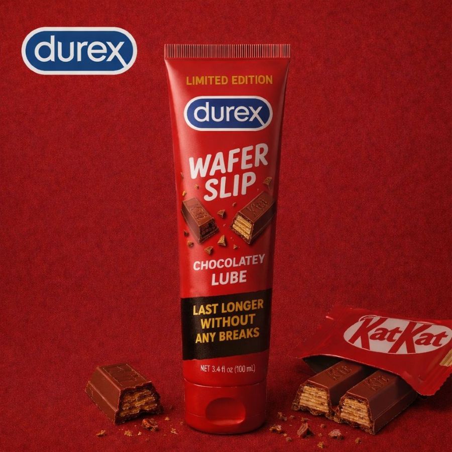 Сингапурское подразделение Durex представило новый вкус смазки: шоколадную вафельную смазку. Смазка обещает продлить половой акт без перерывов, отсылая к слогану KitKat.