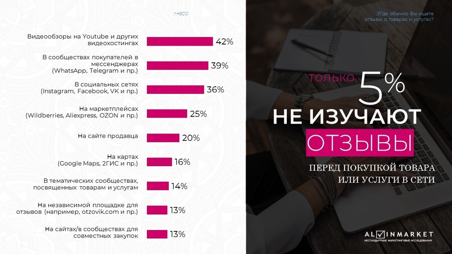 Только 5% пользователей вообще не интересуются чужими отзывами, а 95% ищут опыт других людей.