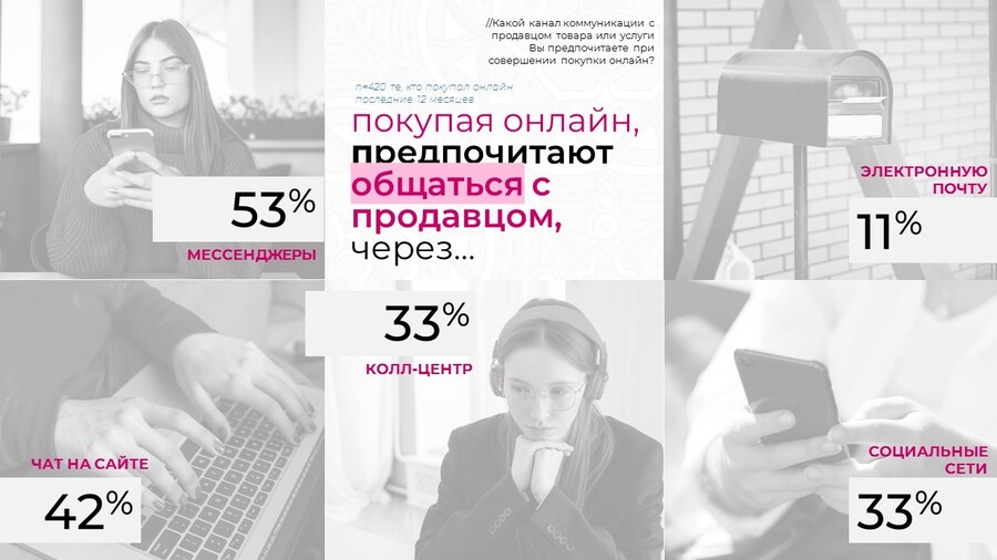 Примечательно, что треть респондентов всё ещё готовы звонить в колл-центр или обращаться через социальные сети, если нужно уточнить детали или решить проблему.
