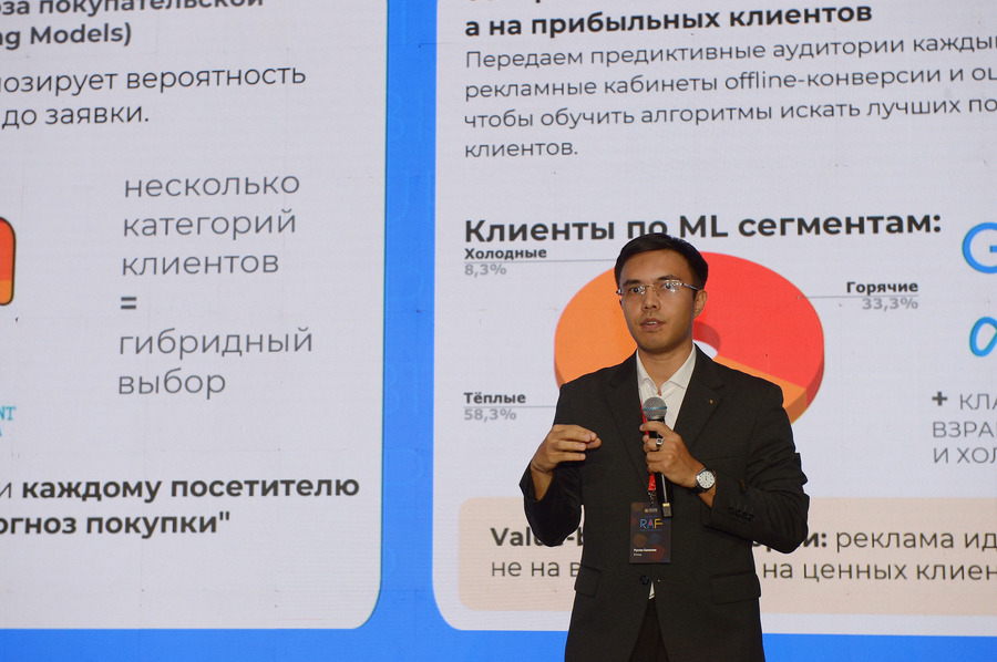 Андрей Симончик, Commercial director, AMDG (Almaty) и Рустем Каматаев, Digital marketing lead, BI Group, на примере кейса показали будущее digital-маркетинга — искусственный интеллект в предиктивном таргетинге.