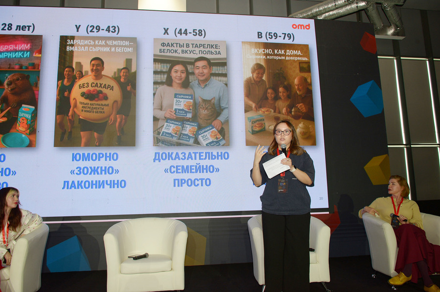 Команда OMD Group — Дарья Полторацкая, Head of strategic group, Лаура Ибраева, Стратегический менеджер и Ольга Киселева, Стратегический директор, представила исследование о том, как поколенческие различия формируют восприятие рекламы и что брендам важно учитывать сегодня.