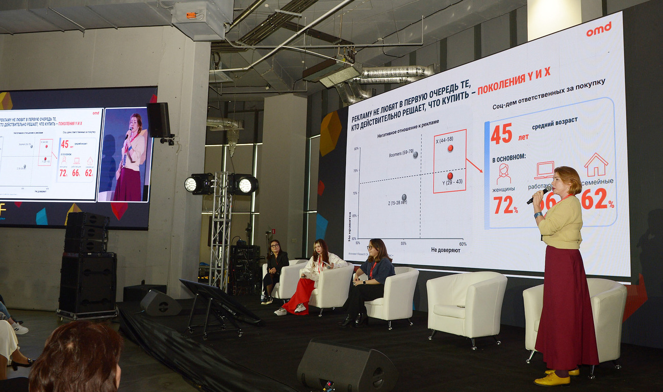 Команда OMD Group — Дарья Полторацкая, Head of strategic group, Лаура Ибраева, Стратегический менеджер и Ольга Киселева, Стратегический директор, представила исследование о том, как поколенческие различия формируют восприятие рекламы и что брендам важно учитывать сегодня.