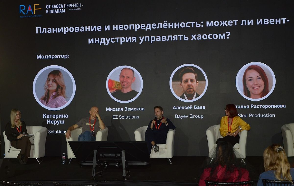 На форуме RAF-2025 прошла дискуссионная панель «Планирование и неопределенность: может ли ивент-индустрия управлять хаосом?». Алексей Баев, основатель и CEO ивент-агентства Bayev Group, Наталья Расторопнова, основатель и продюсер Sled Production House/Advertising Media Centre и Михаил Земсков, управляющий партнер ивент-агентства EZ Solutions, обсудили, как меняется работа в условиях нестабильности, зачем нужны технологии и где проходит граница между ответственностью и хайпом.
