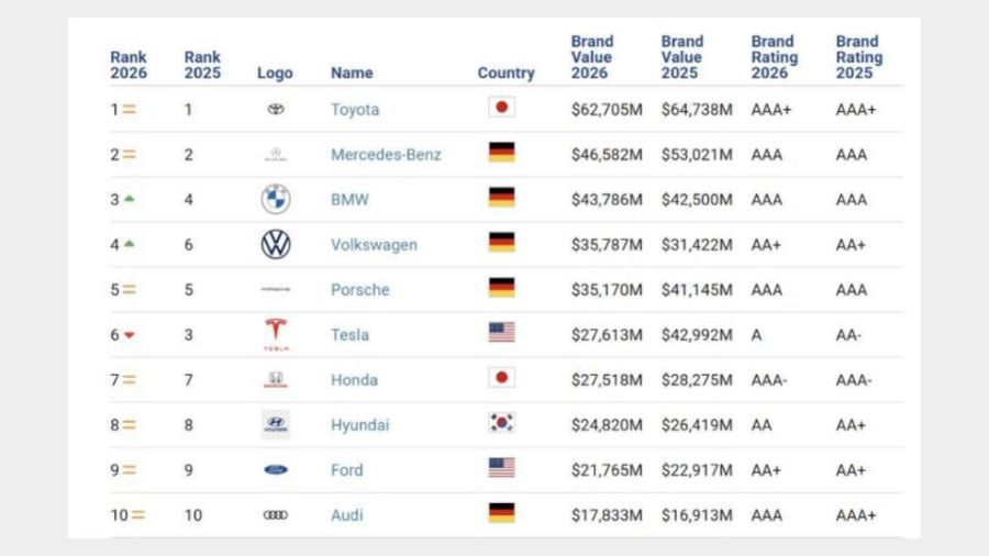 Глобальный рынок автопрома продолжает меняться быстрее, чем обновляются модельные ряды. Это показал ежегодный рейтинг Brand Finance “Automotive Industry 2026”, в котором оценивается не количество проданных машин, а стоимость брендов и их сила. Такой подход позволяет увидеть не только текущих лидеров, но и тех, кто будет определять рынок в ближайшие годы.