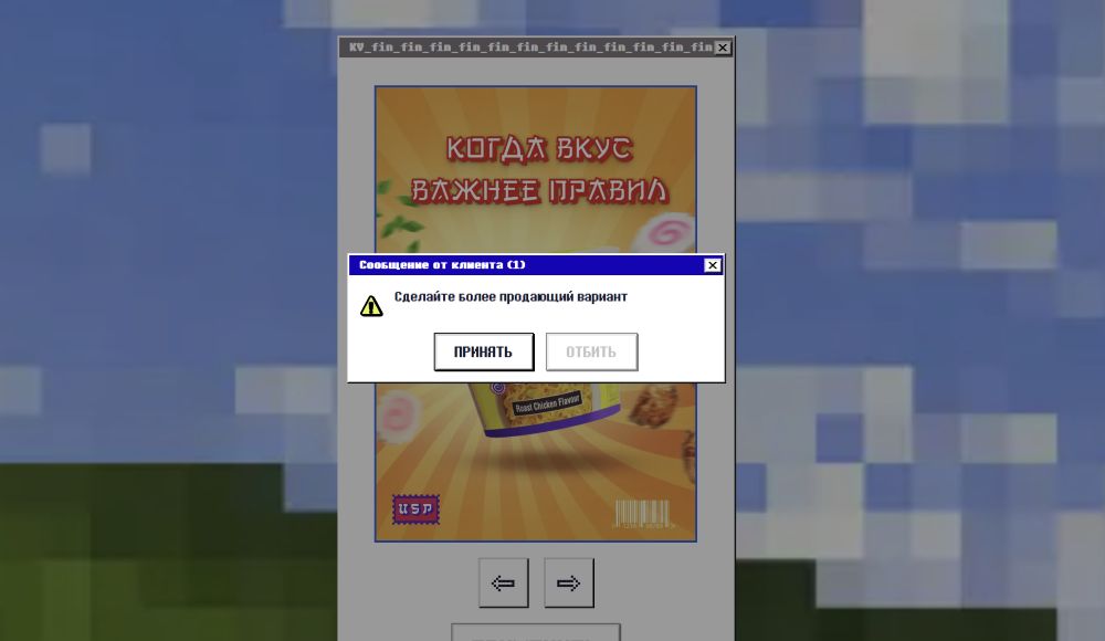 Игра устроена просто: пользователь отрабатывает «последние» замечания клиента в кейвижуале — от «правильного» слогана до размеров логотипа. На глазах у игрока изначальная идея постепенно превращается в набор клише: одинаковые лозунги, стоковые улыбки и стандартные цветовые схемы. То, на что в агентствах обычно уходят недели согласований и десятки раундов правок, здесь занимает всего несколько минут.