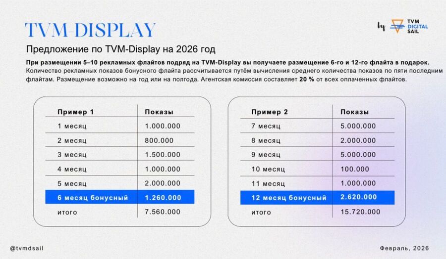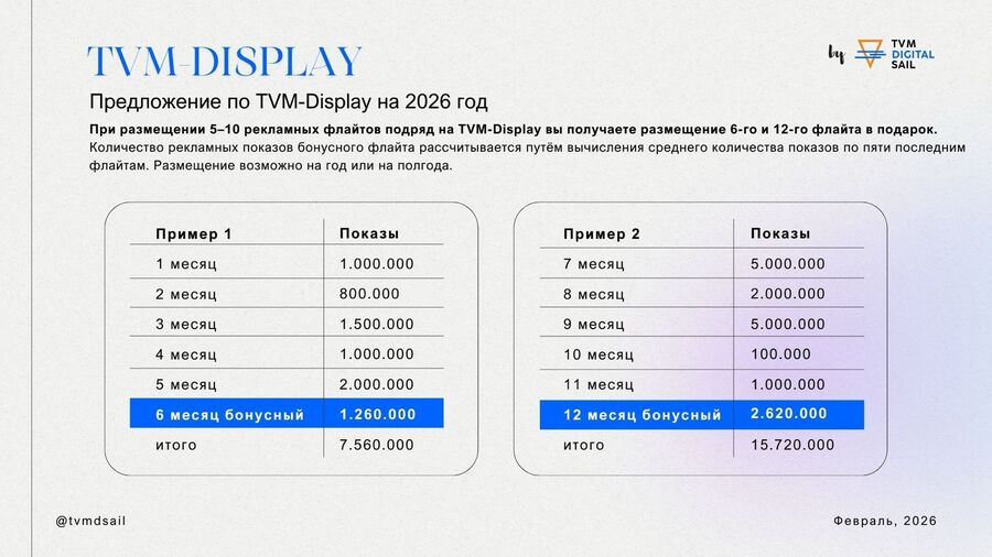 Та же логика применяется и при последующих размещениях: каждые 5 месяцев размещения дополняются 6-м месяцем без дополнительной оплаты. Такой подход превращает вертикальное видео из разовой активности в инструмент устойчивого медиаприсутствия с прогнозируемым бюджетом и возможностью выстраивать последовательную коммуникацию с аудиторией.
